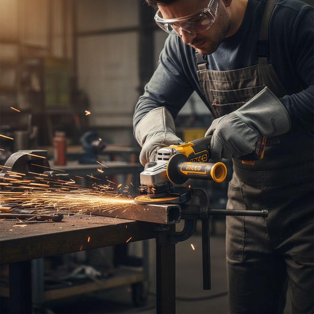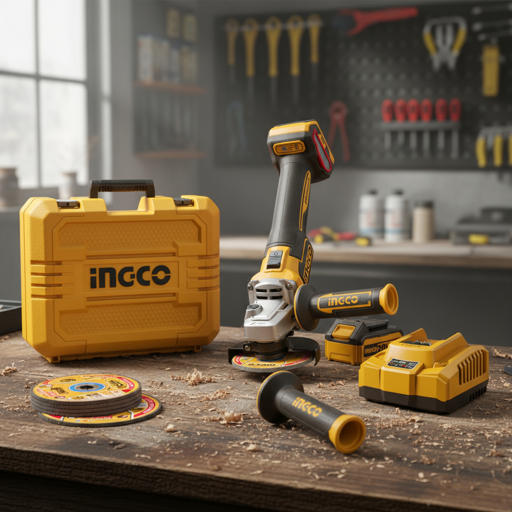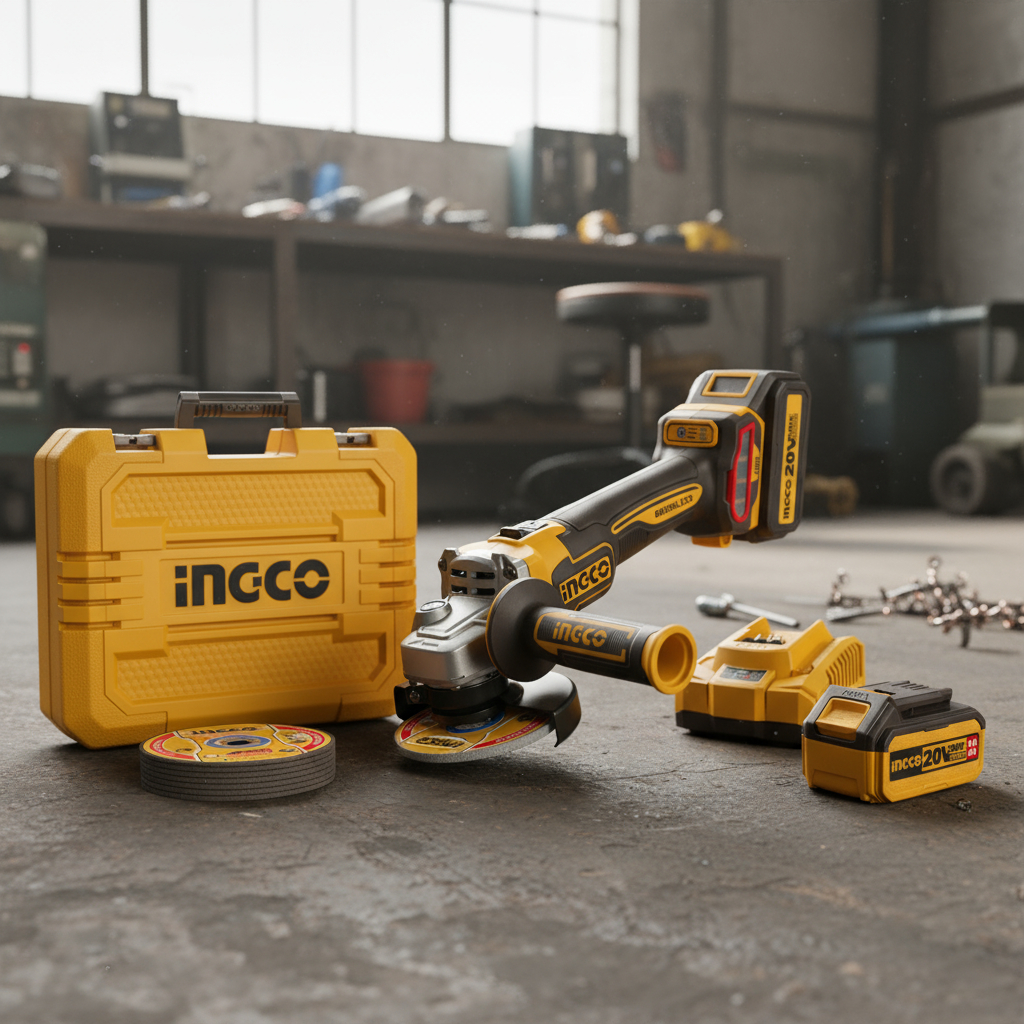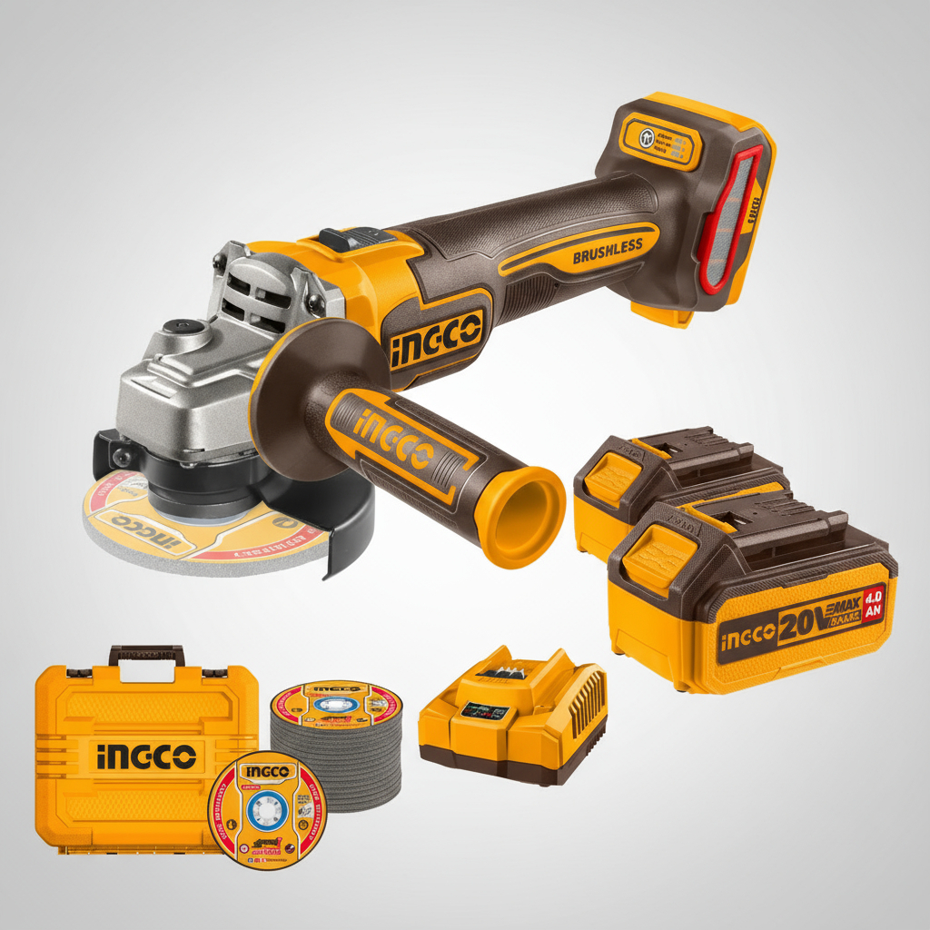 AMOLADORA ANGULAR 115MM A BATERIA P20S 20V BRUSHLESS + 10 DISCOS + 2 BAT 4.0AH + CARGADOR + VALIJA INGCO CAGLI271532