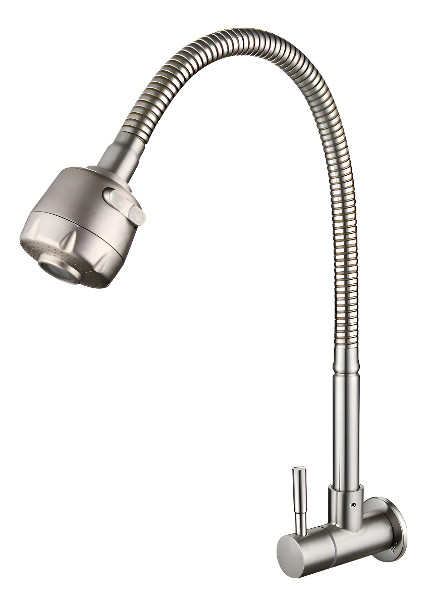 Grifo Cocina Para Pared Pico Unitario Flexible Satin Ac Inox