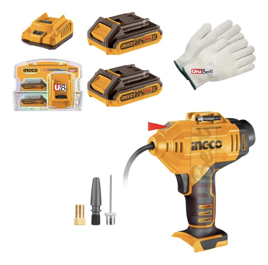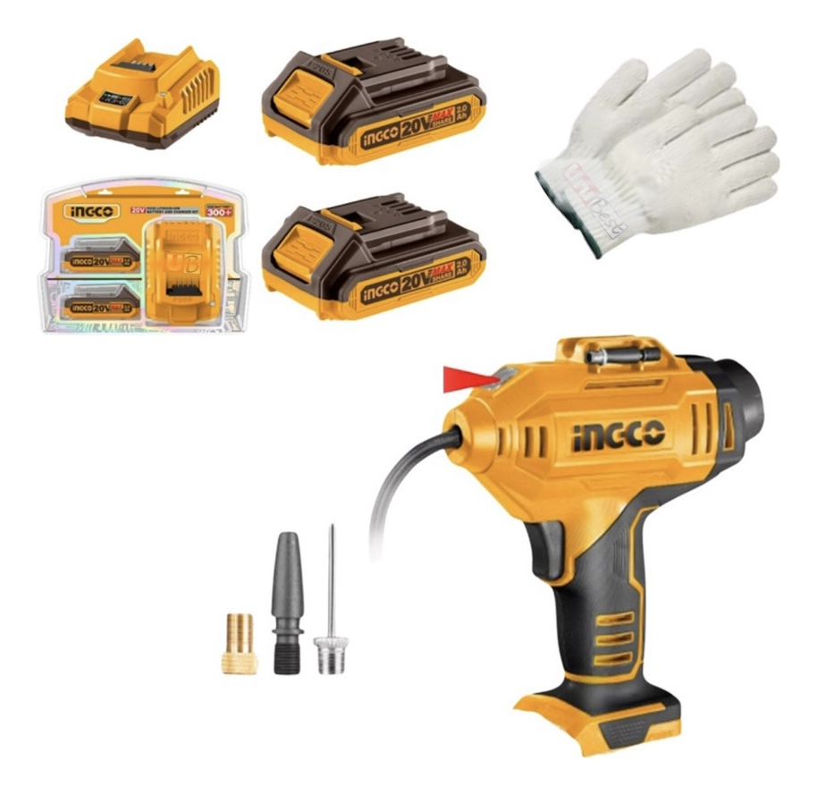 Inflador Compresor 20v Ingco Cacli2018 +2 Baterias Y Carg.