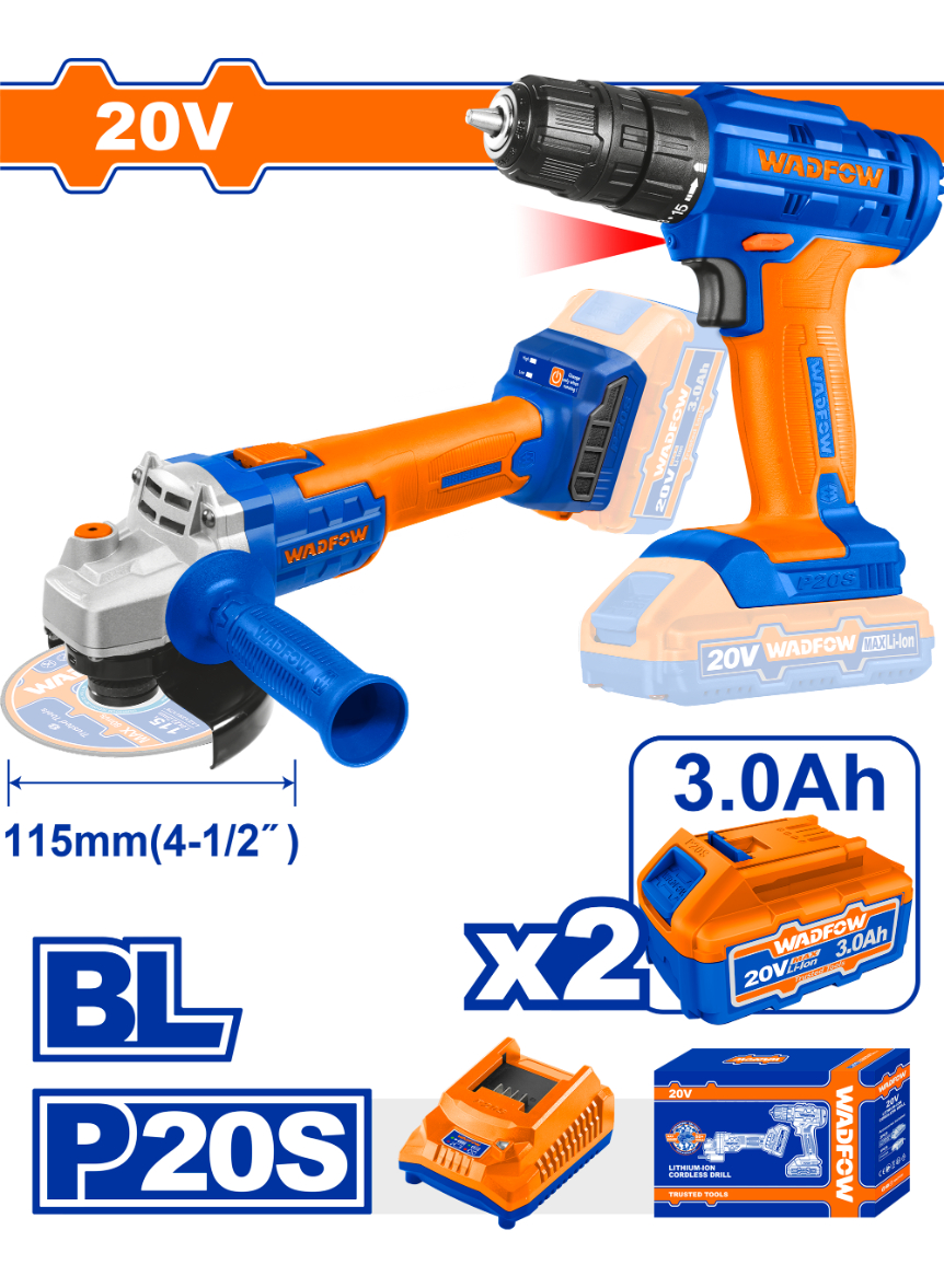 Kit Amoladora + Atornillador 20v Wadfow – Wck20512