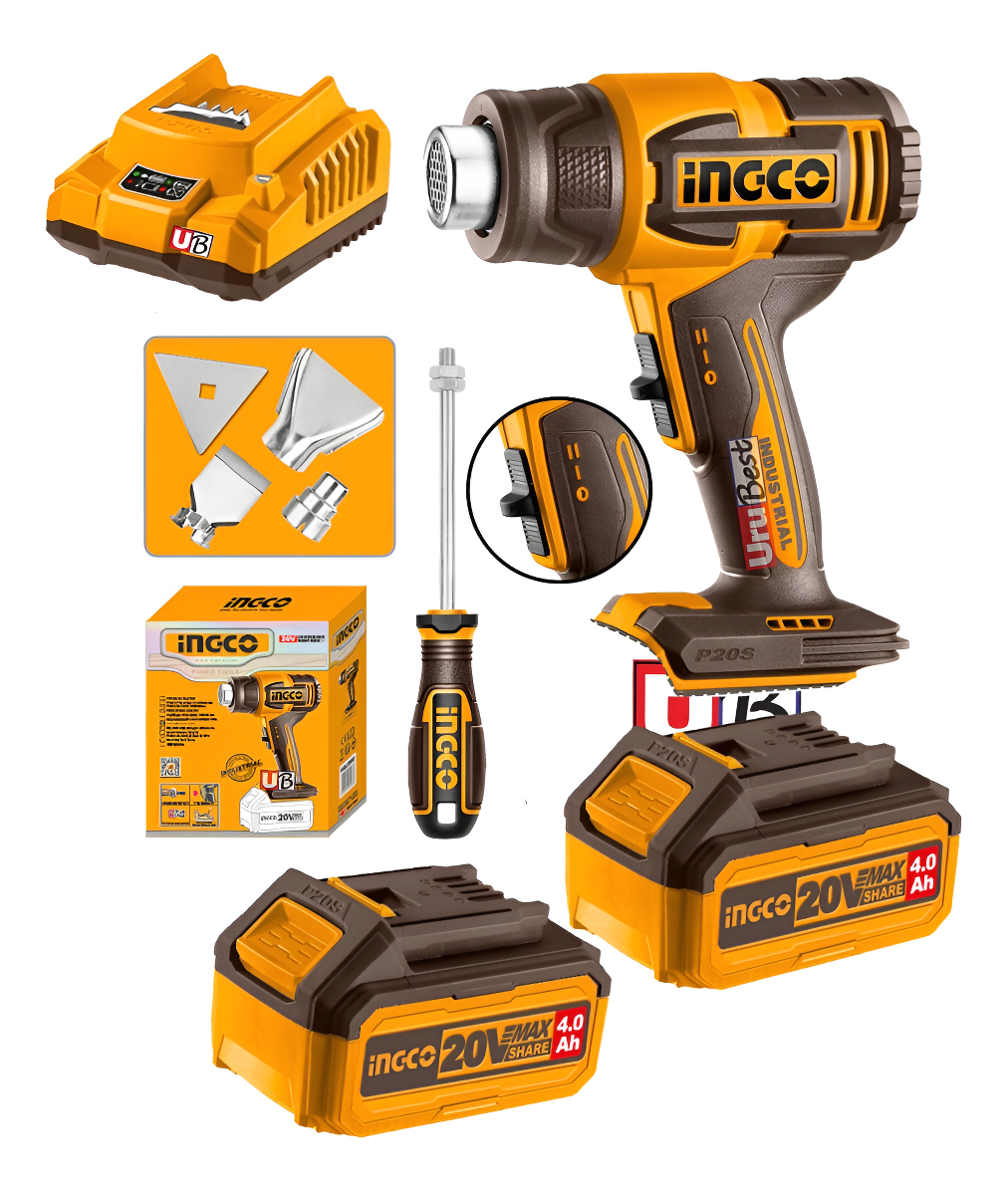Pistola De Calor 20v +2 Baterias 4ah Y Carg. Ingco Hgli2006