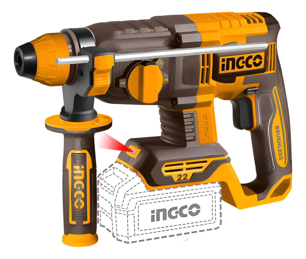 ROTOMARTILLO A BATERIA P20S 20V BRUSHLESS SDS PLUS 2.0J + 3 MECHAS + 1 CINCEL S/BAT Y SIN CARGADOR