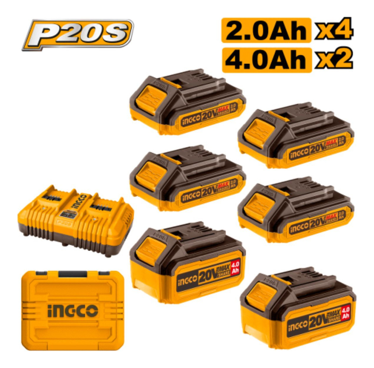 Set X 6 Baterias 20v P20s 4x2ah 2x4ah Cargador Doble Ingco C