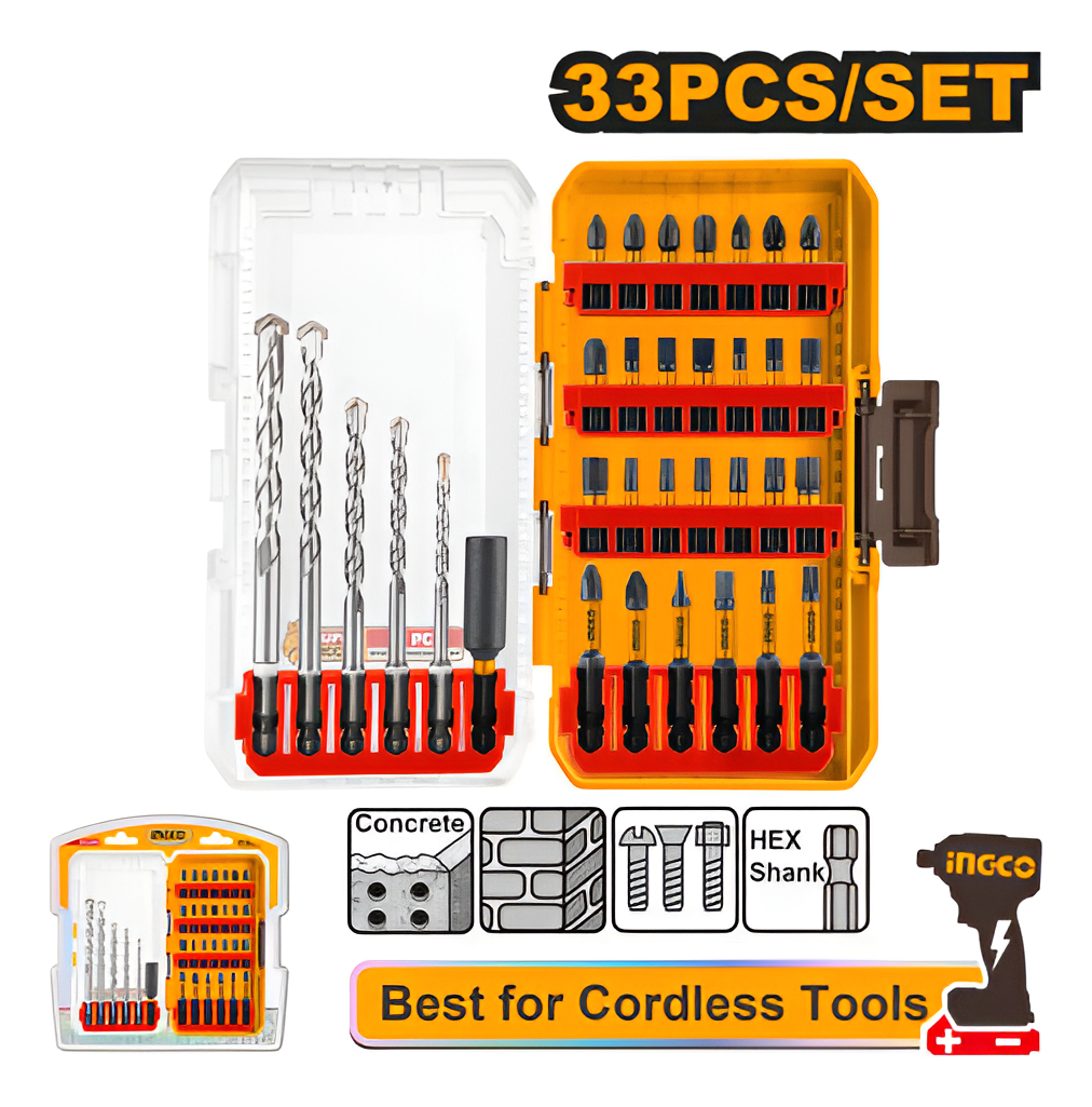SET X33 PCS MECHAS MAMPOSTERIA + PUNTAS IMPACTO INGCO AKDL11303