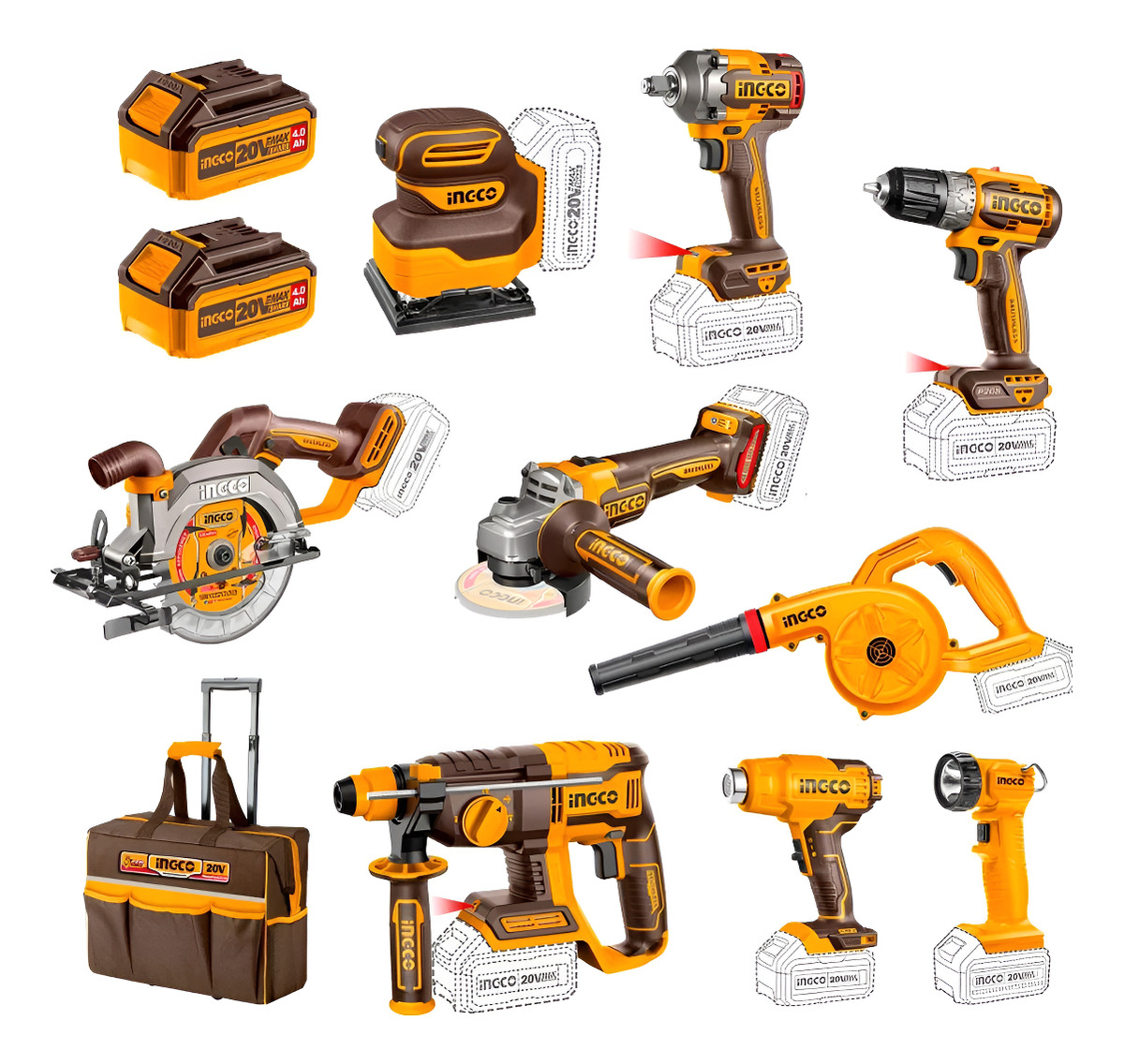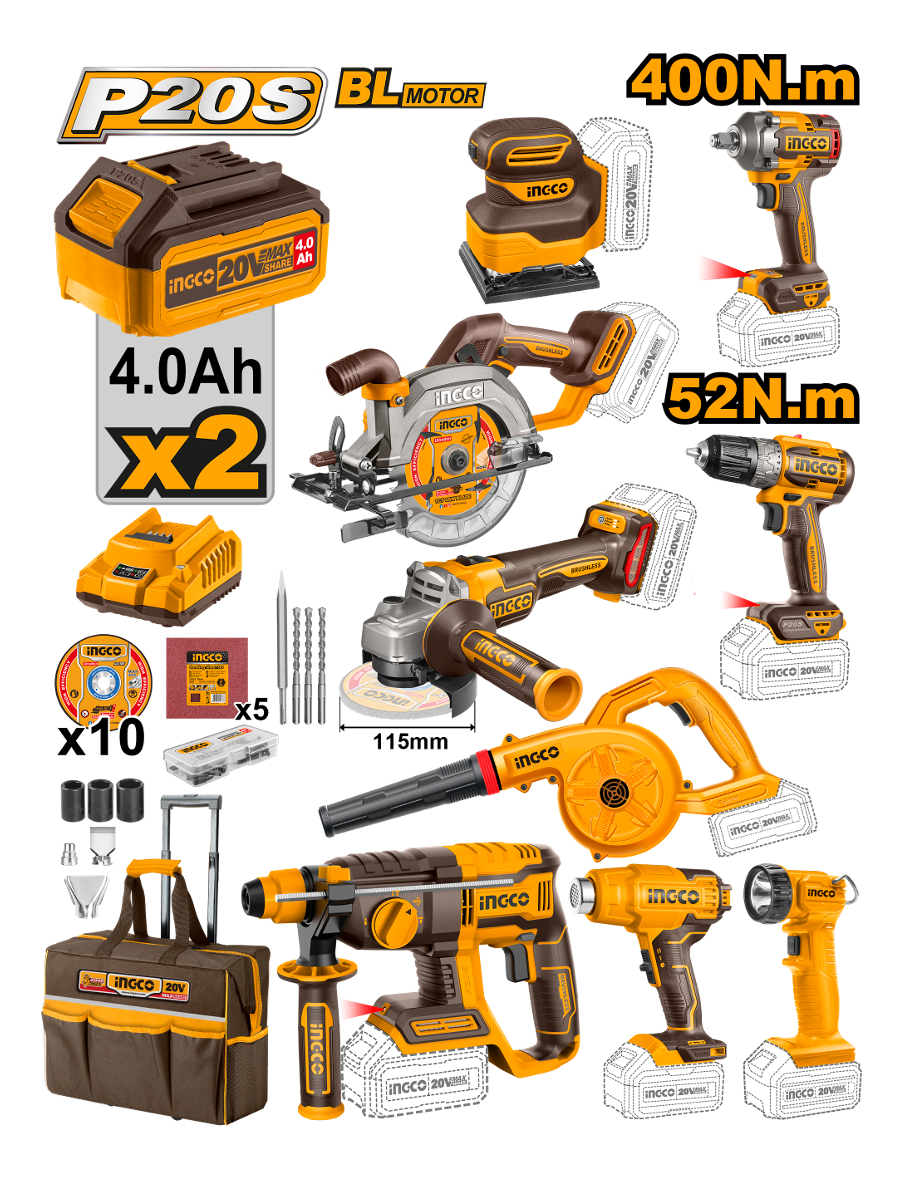 Super Combo 9 Herramientas Inalámbricas Ingco 20v + Maleta