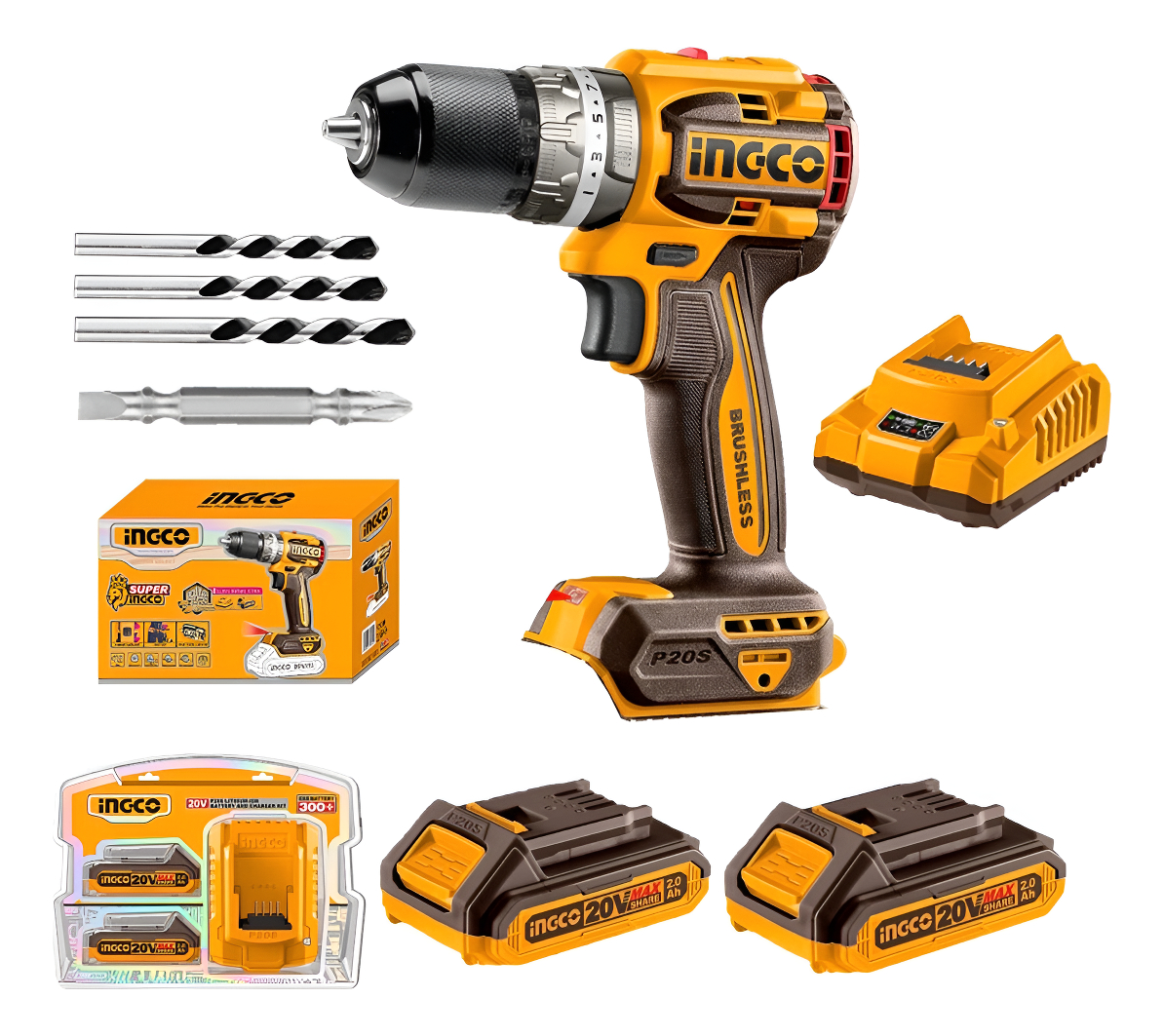 Taladro Percutor 20v 13mm Bl + 2 Baterias + Carg Ingco