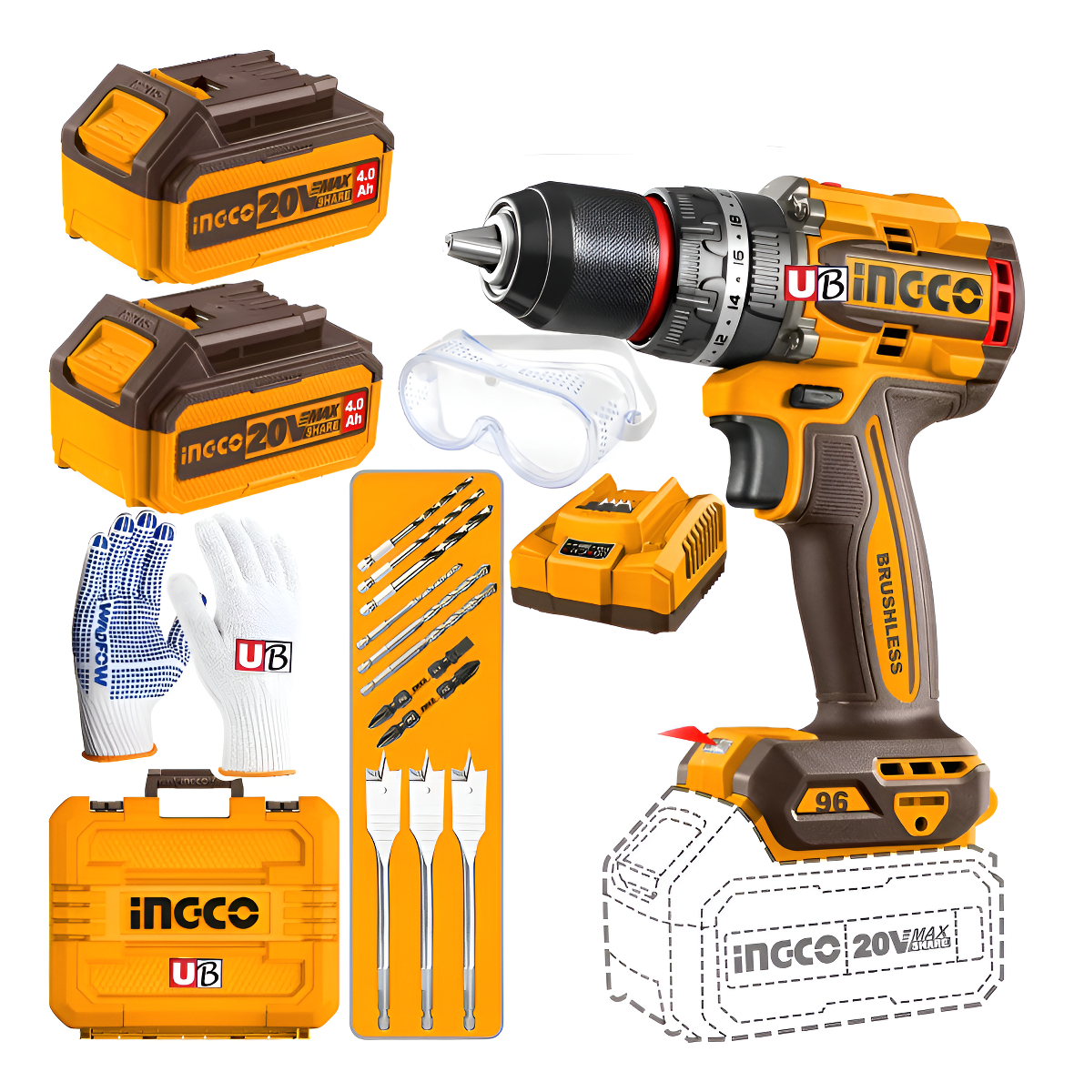 Taladro Percutor 20v 96nm C/2 Baterías Ingco Cidli2096